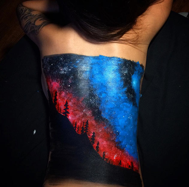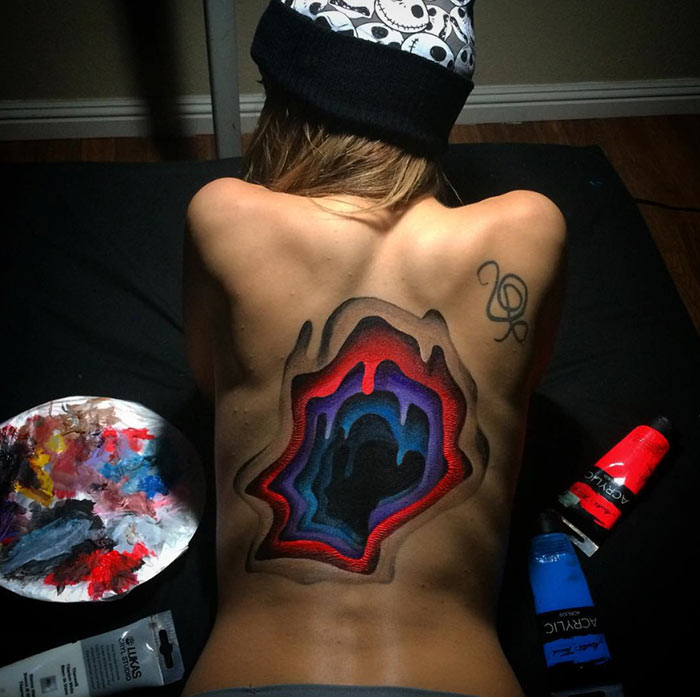 Dövmeleri sever misiniz? Eğer cevabınız evet ise bu yazımız tam size göre! Dövmeleri seviyorsunuz ama yaptırmaktan korkuyorsanız işte bu noktada 3 boyutlu akrilik dövmeler yardımınıza koşuyor. Her dövme iğne ve mürekkeple yapılmak zorunda değil. Natasha Farnsworth, akrilik boyalarla dövme yapmanın yeni bir yolunu keşfetti. Kadının bedenini bir tuval haline getirdi. Çok renkli ve oldukça büyüleyici resimlere dönüştürdü.